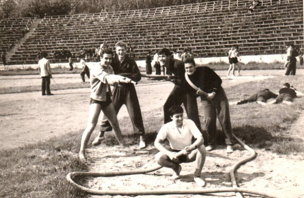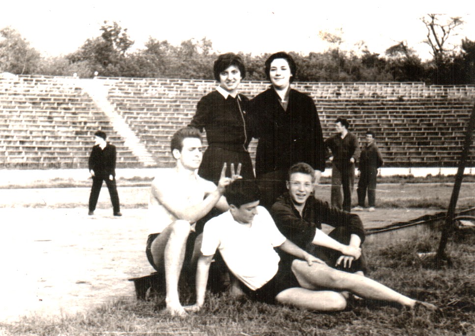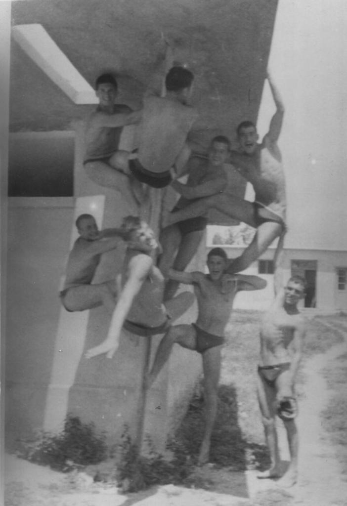 Юли 1963 г. До плувния басейн в двора на училището. Млади-луди глави!