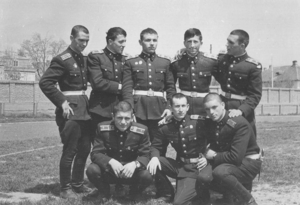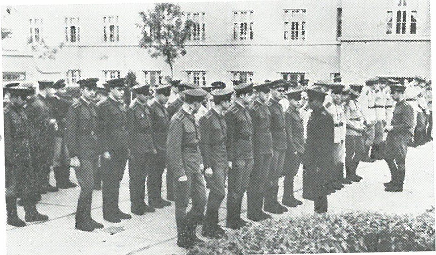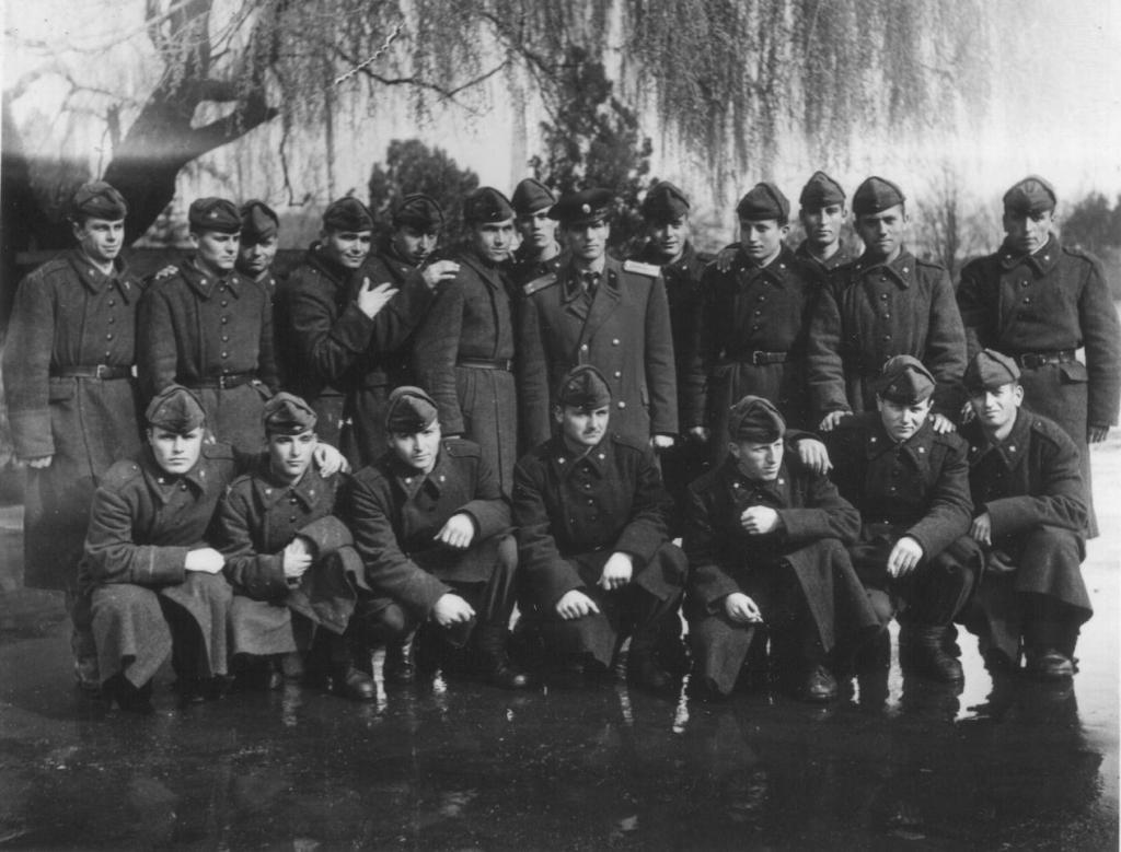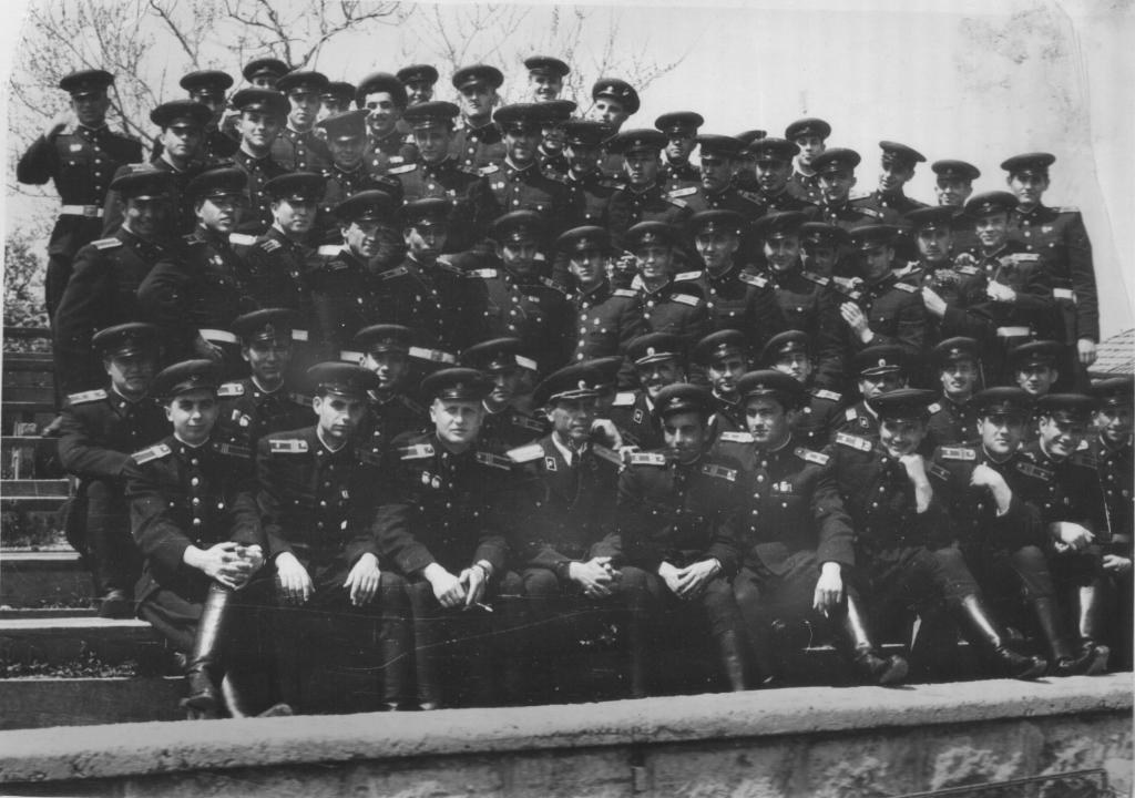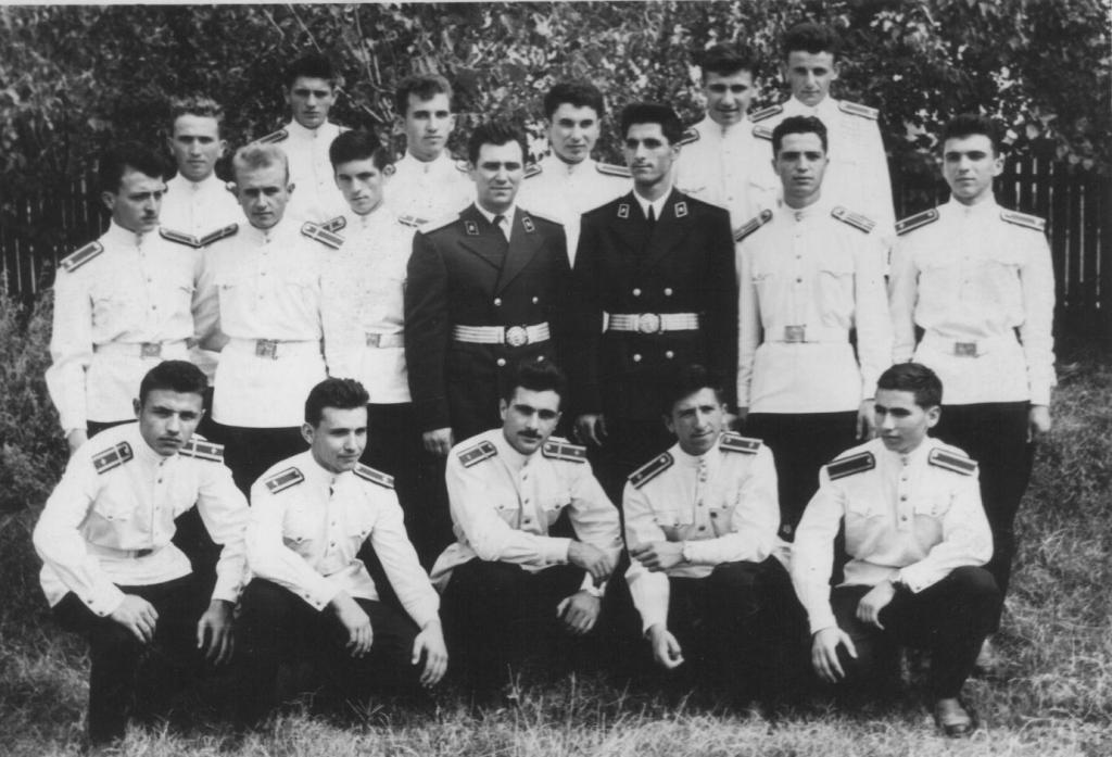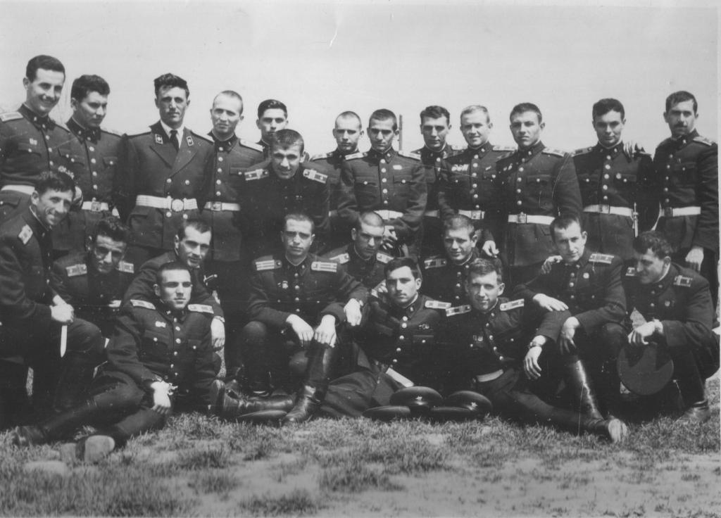 1961 г. Първи взвод (121-во класно отделение) със взводния ни командир капитан Петър Станчев в деня на производството на последния невисш випуск на военното училище. Стоящият от лявата му страна новопроизведен офицер лейтенант Никола Александров ни бе помощник-взводен командир.