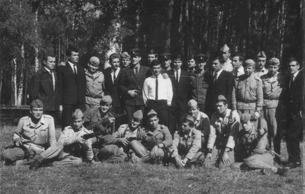 1967 г- Първият ми взвод се уволнява (в цивилните дрехи). В униформи са войниците от втория ми взвод. Взаимно се уважавахме и мисля, че войниците ме обичаха. След уволнението си един от тях ми изпрати голям албум с радиосхеми, защото знаеше, че се интересувам от техника.