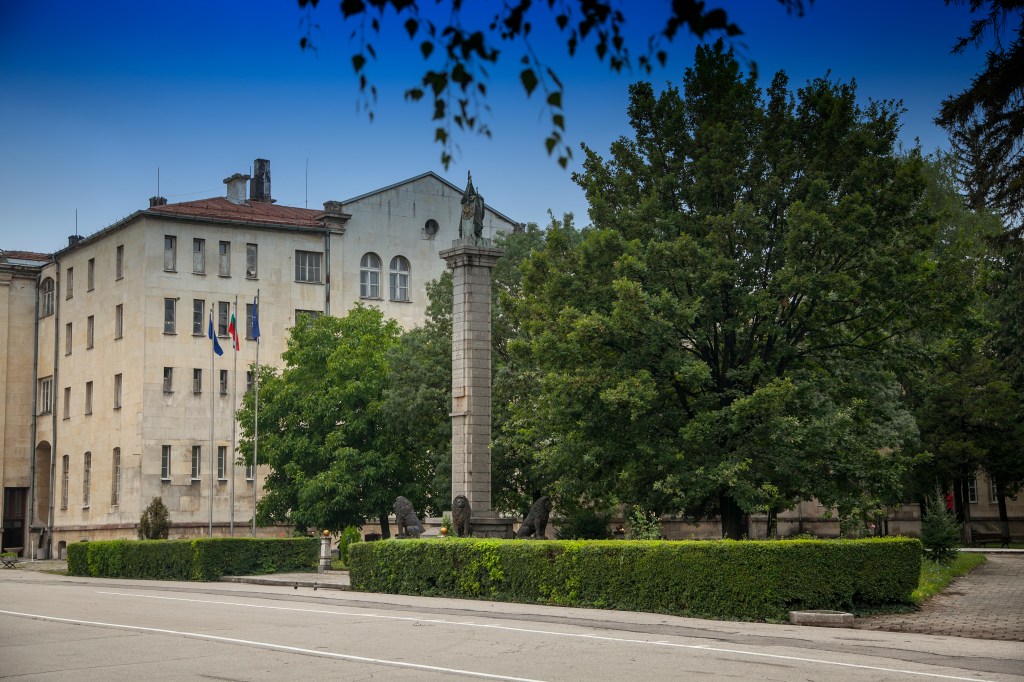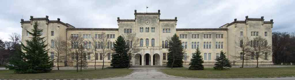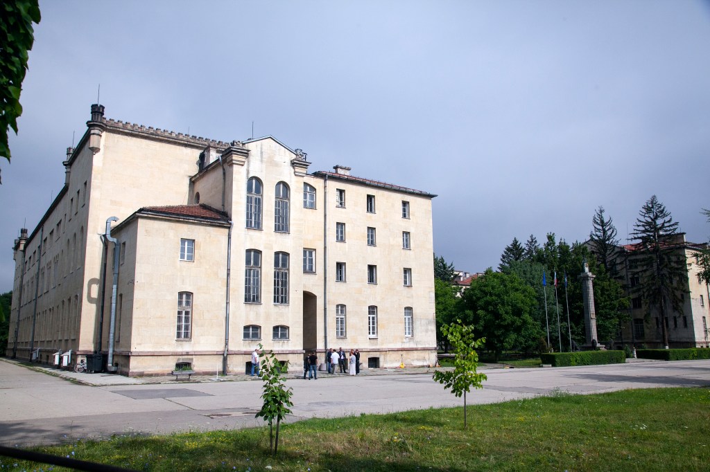 Ето я и нея, величествената сграда на Академията. Там в средата, зад трите правоъгълни прозорци под часовника бе нашето спално помещение. Зад други прозорци на същия, последен етаж, бяха класните стаи, където изкарахме двете последни години от обучението си (1964-1965).