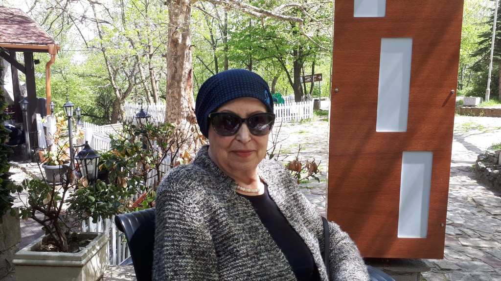 Август 2021 г. На тази снимка Рина, въпреки вече болна и на химиотерапия, е като манекенка. Макар и на 78 години си остана хубава. Всички много я обичахме.