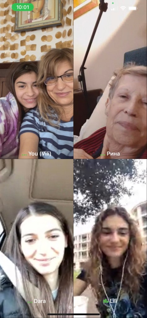Януари 2021 г. Снимка от последния й конферентен разговор по Вайбър с любимите внучки и дъщеря й от САЩ, които до последно се тревожеха за нейното състояние. Горе вдясно е последната снимка, която те й направиха. Последните снимки, които аз й направих, няма да ги публикувам, тъй като тя вече никак не изглеждаше добре и не искаше такава да я помним.