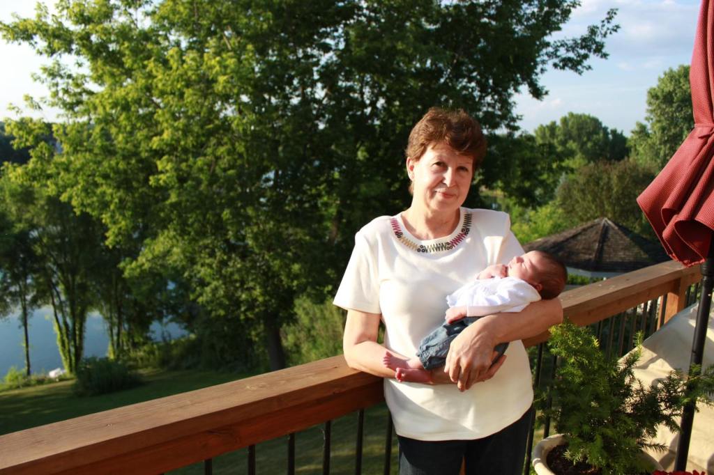 Юли 2011 г. – Рина на терасата на къщата в Минеаполис с наскоро родената най-малка внучка Миа. Бе щастлива да стане за пети път баба.