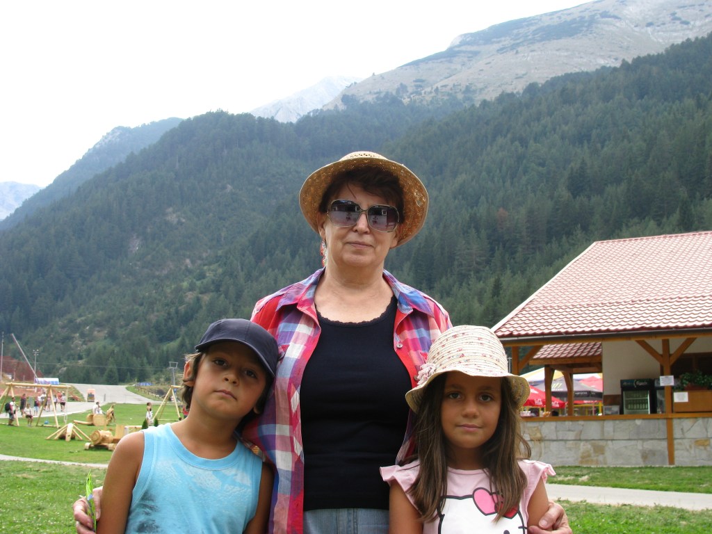 2012.08.05 – Рина с внуците-близнаци Мишо и Марта в планината над гр. Банско.